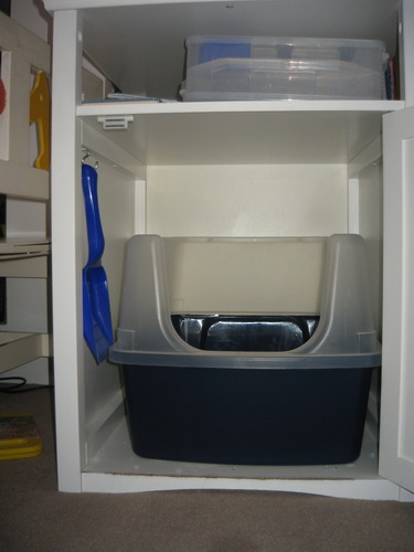 The Iris Open-Top Litter Box is the ideal way to keep your kitty happy and your home smelling and looking its best. A clear plastic shield attaches securely to the box’s body to provide your pet with privacy on 3 sides and to keep litter from spraying out of the box onto your floor. The shield is open on top to make it easy for you to reach inside to clean the box and refill litter. The attractive plastic design and navy blue color blend in perfectly with your room décor. Includes litter scoop that fits anywhere on the pan. Uses standard pan filters. Measures 15 x 19 x 12 inches. Made in the U.S.A.