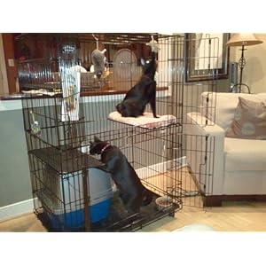 MIDWEST 130 Cat Playpen- The NEW and improved MIDWEST cat Playpen Model 130 is designed with not only the kitten's heath in mind, it also has many great new features that make the pet parent's life much easier aswell. The cat playpen folds down easily for storage or traveling, roll and lock casters for easier cleaning, a slide-out composite plastic florr pan and swing open front doors with dual-point door latches for the security of the kitten or cat inside. The cat playpen is roomy enough for large cats or small kittens with abundant areas to play whether it be on the ABS plastic pan or jumping from one of three adjustable wire framed plastic shelves. When and if the energy level drops the cat playpen also comes equipped with a Deluxe Chenille bed securely attached to a shelf to curl up and take a nap.