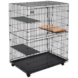 Not only is the Midwest Cat Playpen designed specifically to suit your cat’s lifestyle, but it also contains great features that make your life easier too. Made using sturdy black Electro-Coat-finished wire with ABS plastic components, the Playpen features securely locking front doors that swing open to provide easy access, wide height-adjustable resting benches made from durable ABS plastic, an ABS plastic floor pan that slides out for easy cleaning, and an ABS plastic base with swivel casters that let you roll the playpen from room to room, but also lock in place for complete safety. If you need to store the playpen or take it with you, it completely collapses for easy portability.