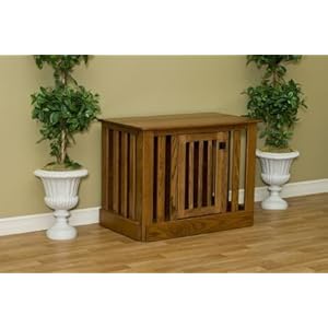 Dog Crate Entertainment Center A custom made Amish wood dog crate that doubles as an heirloom-quality showpiece! Whether you choose to use the exterior as a curio table, sideboard or entertainment center, the interior makes a safe and comfortable home for your pet. Entertainment centers aren't usually the prettiest piece of furniture. This one's designed with form and function in mind, though - you'll be looking for excuses to entertain your friends, just so you can show off your beautiful new furniture. Like all Pinnacle Woodcraft products, your dog crate entertainment center is available in over 8 Oak stain colors choices of stain color and 5 stain colors for the Maple. (Contact us to see our color charts.)Adding a protective plastic liner makes cleaning a breeze for you, (sold Seperate)and we also make comfortable, durable mattresses to help make your pet's new house feel like home Sold Seperate). Dimensions 41" Long x 26" Wide x 28" High Outside 36"LOng x 21" Wide Inside ? Perfect for larger dog breeds ? Solid wood construction - oak, maple. ? Easy to assemble