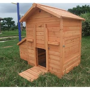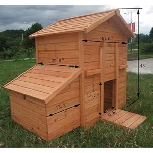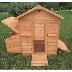This high quality deluxe chicken poultry coop is suited for chickens or hens and the other small aminals. It is made from premium cedar wood, treated and painted to hold up to the outdoor elements. The wood surface is coated with a water-based preservative leaving a golden brown finish. The Pawhut chicken coop is strong and durable, and will be a complement to any home or garden. It can hold up to 8 chickens (depending on the size of the birds).
