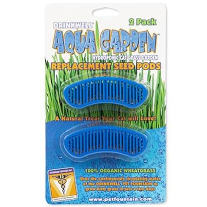 The Drinkwell® Aqua Garden Replaceable Seed pods come in convenient 2-packs and are easily removed and inserted into the Aqua Garden basket. Replace seed pods as needed to continue growing a natural, 100% organic wheat grass treat for your cat.