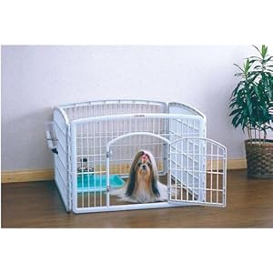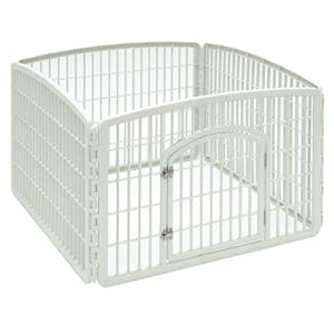 This 4-panel pet pen can be used both indoors and outdoors. Made of heavy-duty plastic, this pen features double steel door latches for added security and interlocking panels for easy assembly. Made in USA! *Floor tray is not included